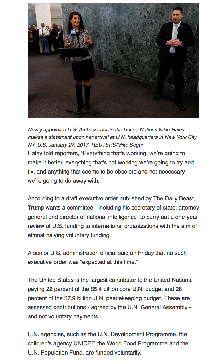 “Our goal with the administration is to show value at the U.N. and the way that we’ll show value is to show our strength, show our voice, have the backs of our allies and make sure that our allies have our back as well,” Haley said.