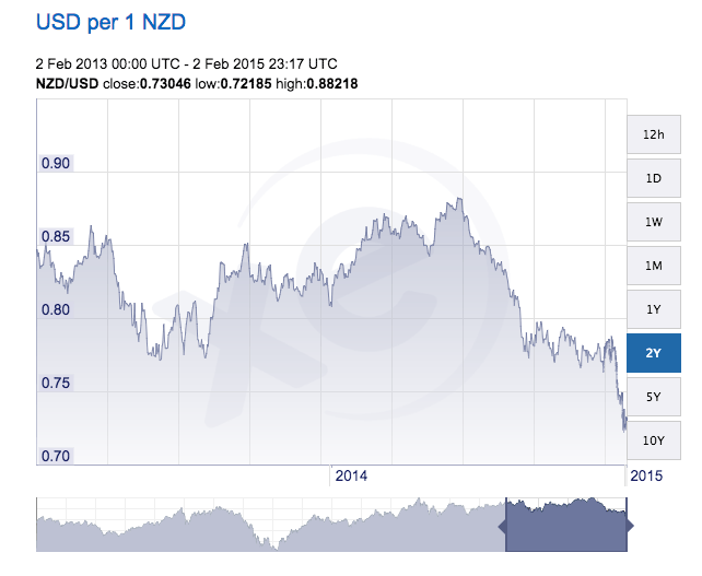 My NZD earnings go into a NZD account and my USD earnings are saved in a USD denominated account. When the exchange rate is good, I covert some money. If it isn't, I leave it be.