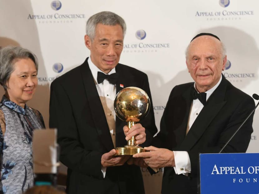 This one is a Jewish award lah. The angmo on the right wearing a Yarmulke is an angmo Jew. Old Fart is known as the Hakka Jew, so his son is also a Hakka Jew and qualified to accept this reward.