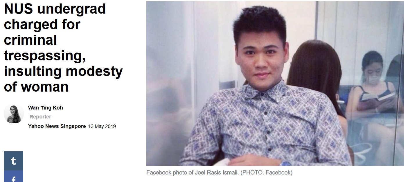 Even with the National University of Singapore (NUS) in the spotlight over the recent Monica Baey-Nicholas Lim issue, another one of its students was taken to court on Monday (May 13) after he allegedly filmed his schoolmate showering on campus.